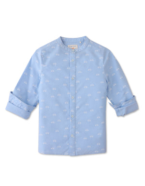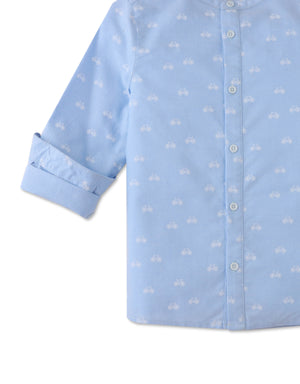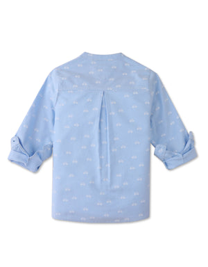 Your little boy will look so handsome in this bicycle long-sleeved shirt in a refreshing blue hue.