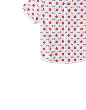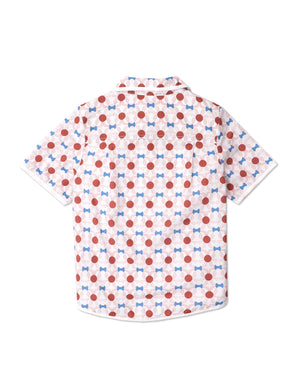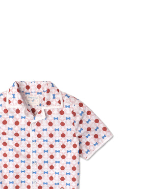 BOYS TILE PRINT SHIRT WITH SWISS PIPING