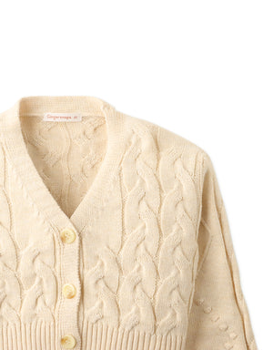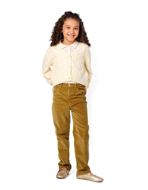 This chunky cable knit cardigan in off-white is one of the cutest and coziest outfits for playtime!