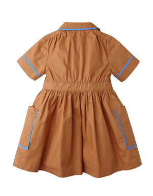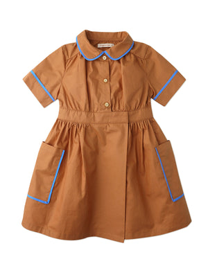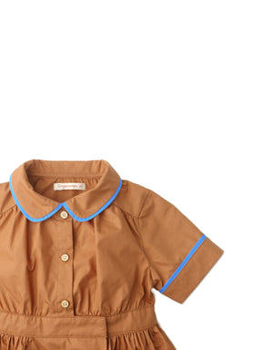 GIRLS PETER PAN COLLARED DRESS WITH CONTRAST PIPING