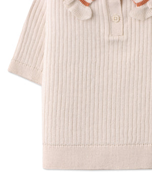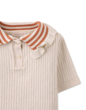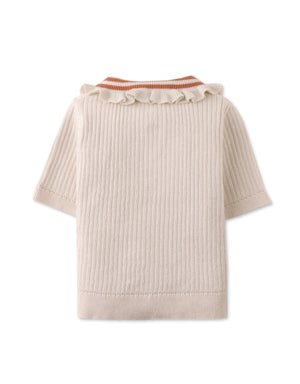 She will sparkle with elegance in this knitted ribbed top with an adorable striped collar and ruffle details!