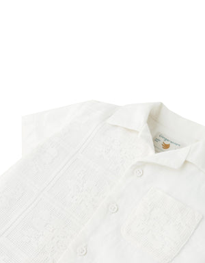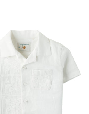 BABY BOYS LACE AND LINEN HALF & HALF SHIRT