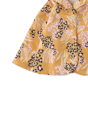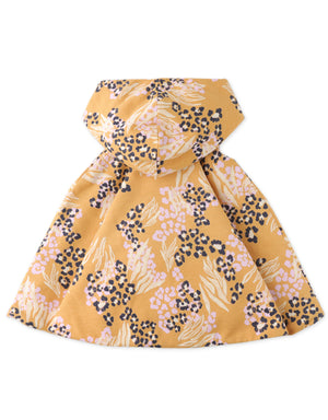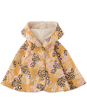 BABY GIRLS ANIMAL SKIN PRINTED HOODED PONCHO WITH FAUX FUR LINING
