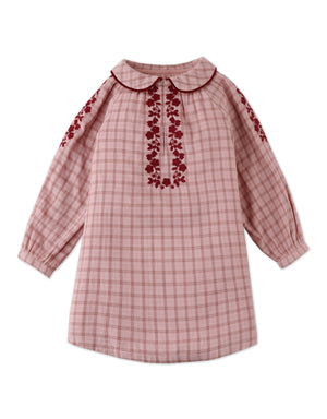BABY GIRLS CHECKERED DRESS WITH EMBROIDERY DETAILS