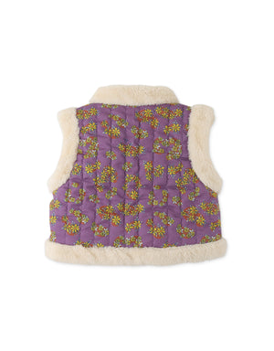 BABY GIRLS FAUX FUR AND PRINTED COMBI REVERSIBLE WADDED GILET