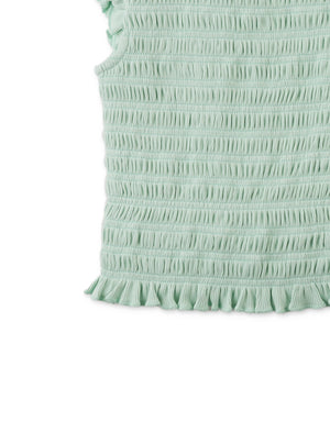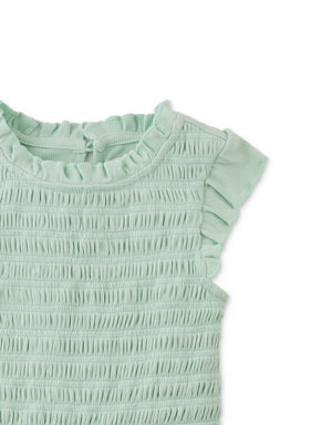 Dress your darling in sweet sophistication with our Maya smocked ribbed top, blending comfort and charm for her everyday adventures.
