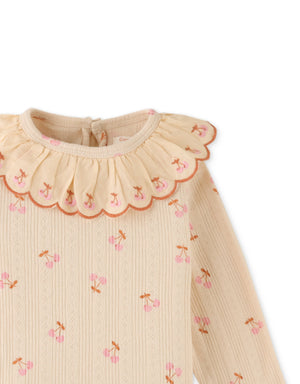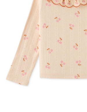 BABY GIRLS PRINTED RIB TEE WITH EMBROIDERED SCALLOP COLLAR