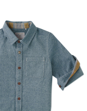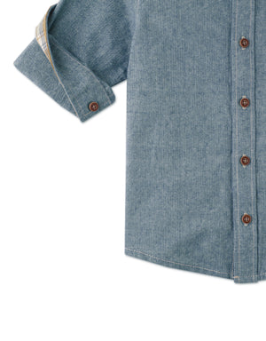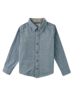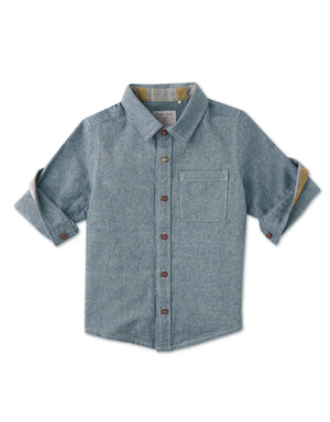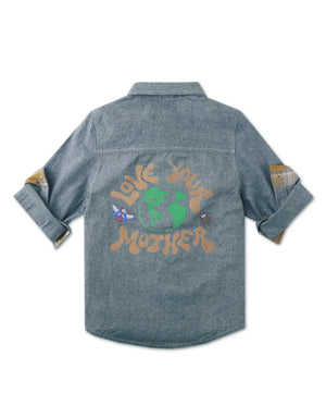 Get ready for playtime with this chambray long-sleeved shirt adorned with flock prints and embroidery detailing!