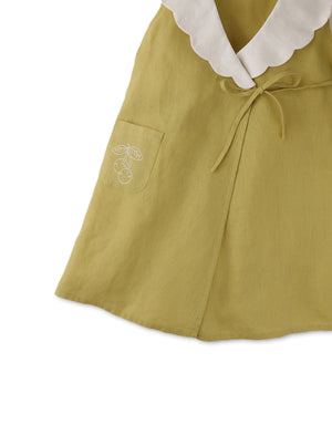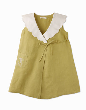 Come play in this scallop-collared wrap dress crafted in linen and adorned with the sweetest cherry embroidery!