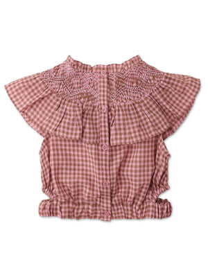 GIRLS GINGHAM TOP WITH SIDE CUT OUTS
