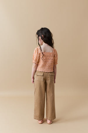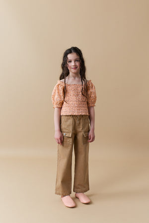 Transform your little angel into a timeless vision with our ditsy print Rhiannon top, featuring a smocked bodice for a touch of comfort and a flattering fit.