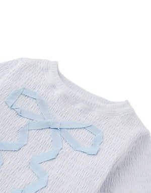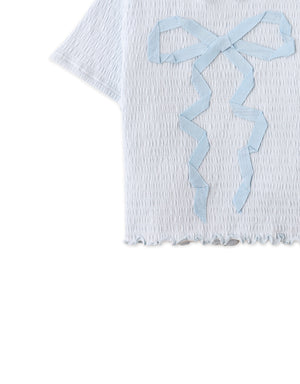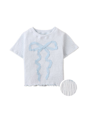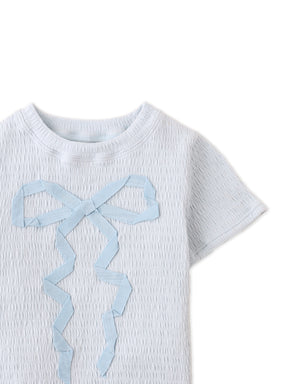 ALESSIA SMOCKED JERSEY BABY TEE WITH BOW APPLIQUÉ