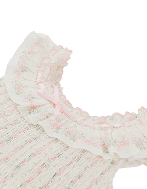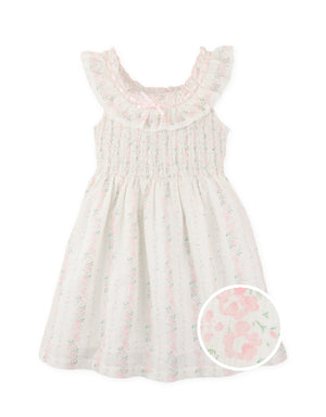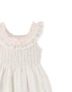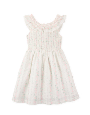 ALLEGRA PRINTED SMOCKED DRESS WITH RUFFLED AND RIBBON DETAILS