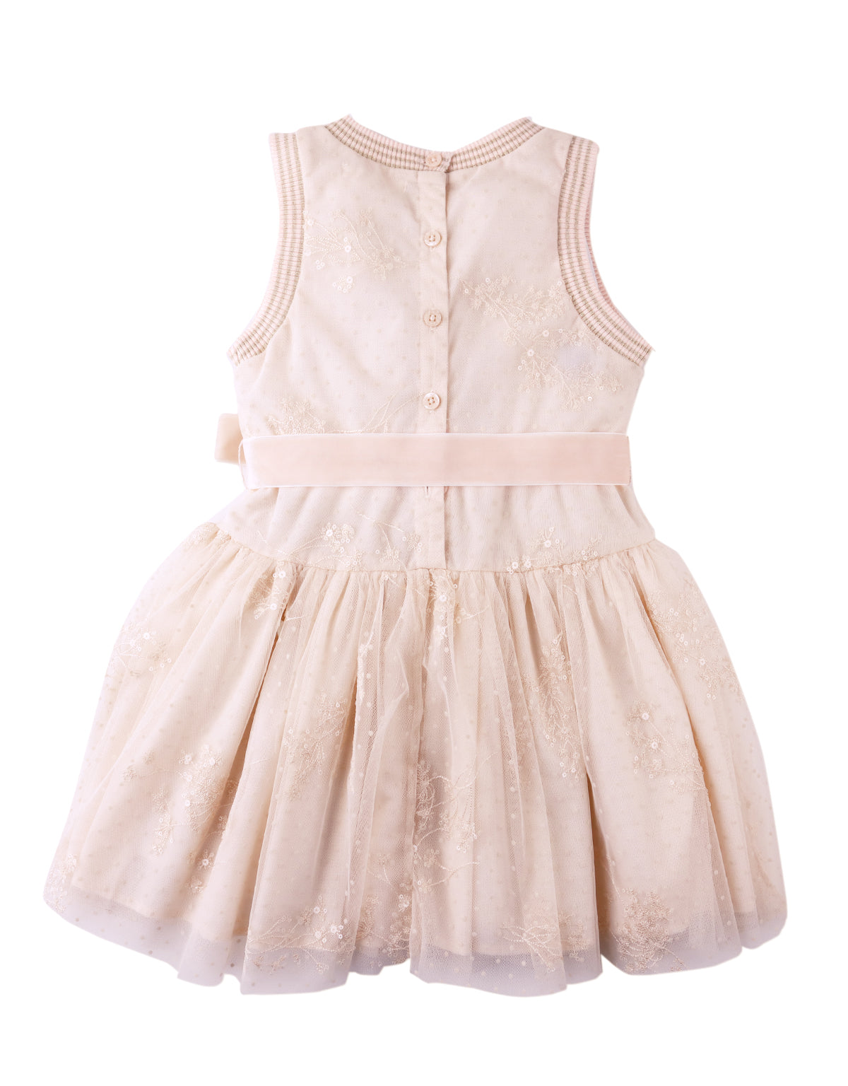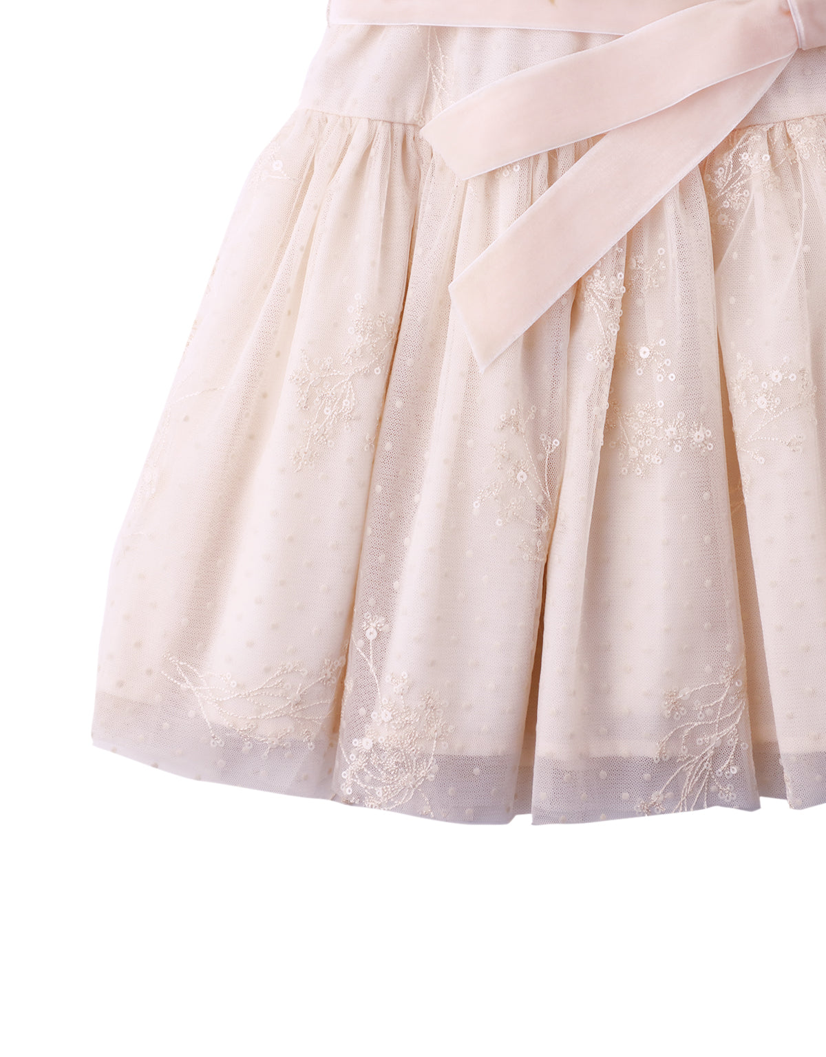 Soft hues and intricate embroidery make this dress a picture of charm. Finished with a sweet bow at the waist, it’s perfect for festive gatherings and cherished celebrations.