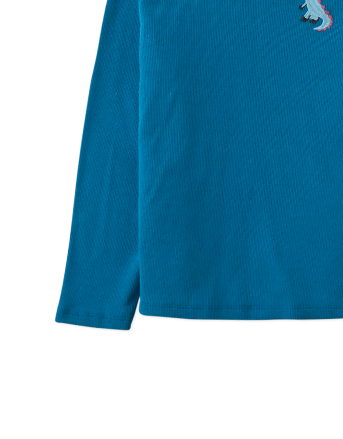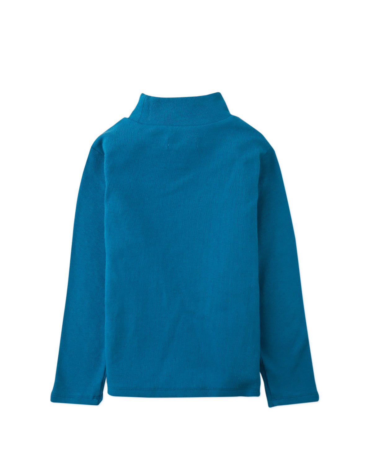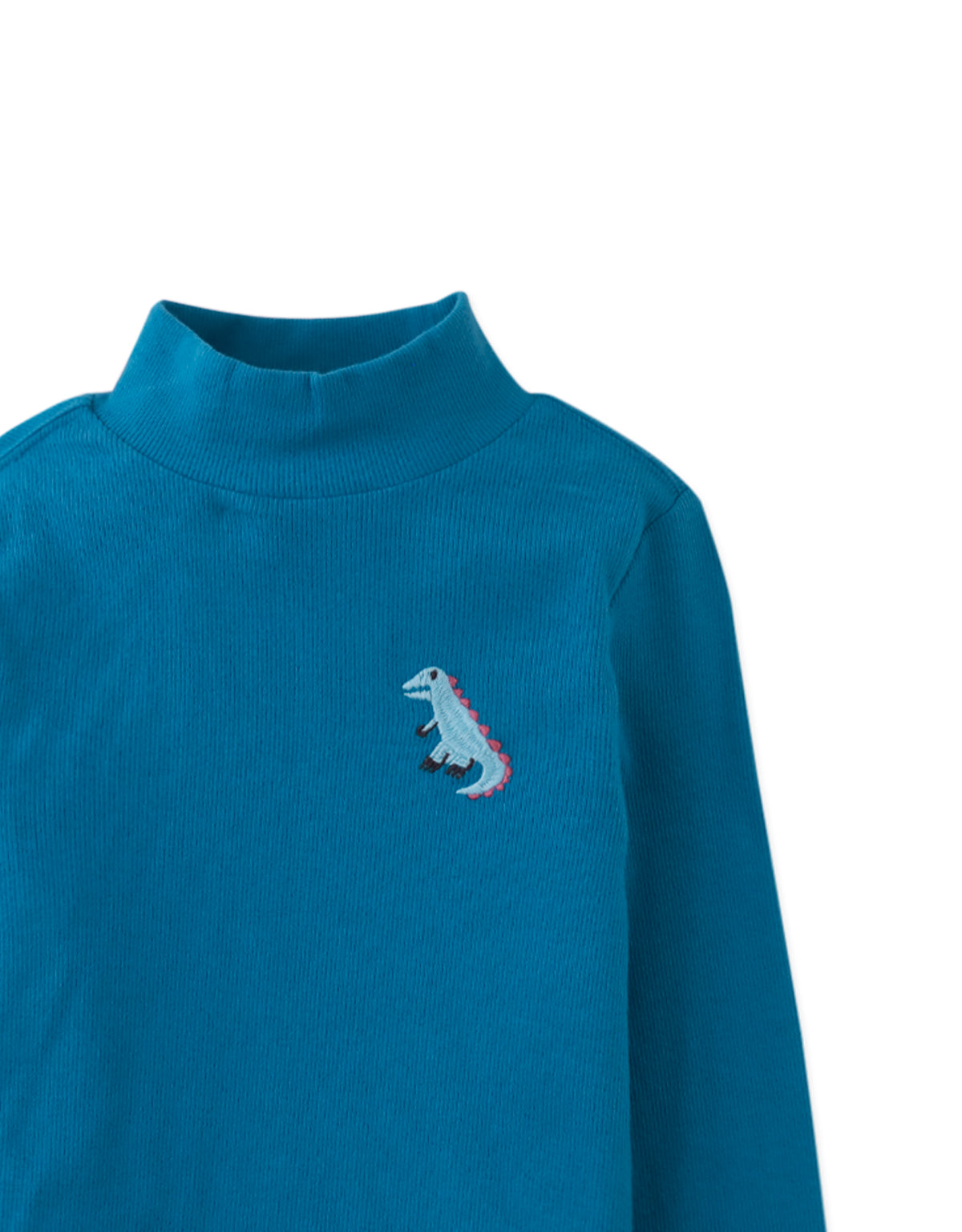 With its mock neck and long sleeves, the Andrei T-shirt keeps your little explorer warm, while the vibrant blue hue and embroidered T-Rex detail keep his style fresh and fun.