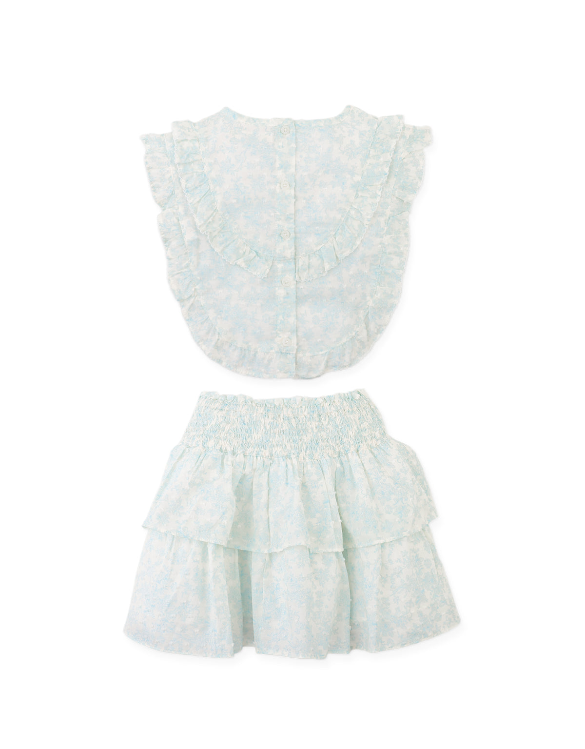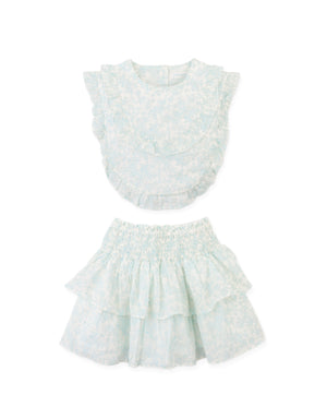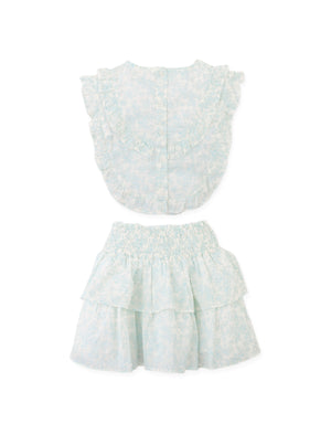 ARABELLA FLORAL TOILE RUFFLE TOP AND SMOCKED TIERED SKIRT SET