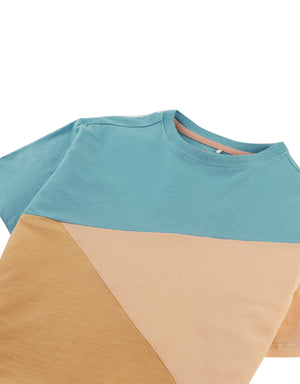 This colorblock tee blends soft comfort with a bold geometric design, giving your little hero a cool, modern look for everyday adventures!