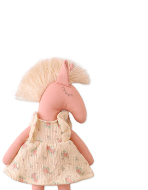 Ashley Horse is a playful soul with a soft heart. Dressed in a loveable printed dress and cozy knee socks, she’s ready to trot into your little one’s world of make-believe. Full of cuddles, Ashley makes every moment feel magical.