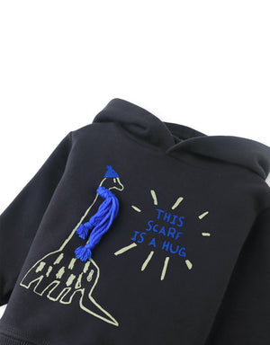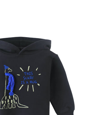BABY AIDAN HOODED SWEATSHIRT GRAY WITH DINO PRINT AND YARN CORD ACCENT