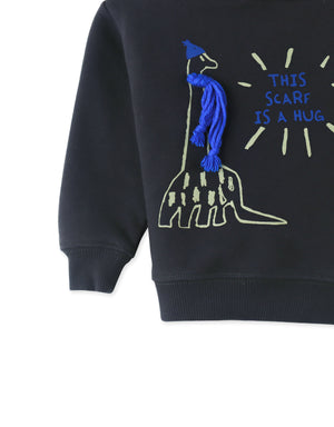 The Baby Aidan Hooded Sweatshirt in Gray brings cozy comfort and party vibes with its playful Dino print and flocking detail, making it a fun standout piece.