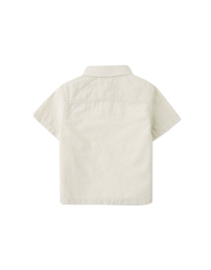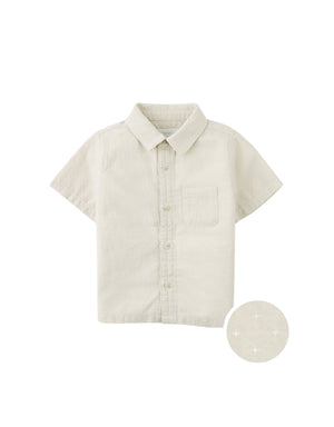 Outfit your little one in this beige short sleeve dobby shirt, featuring a bartacked placket that adds a touch of sophistication to their look.