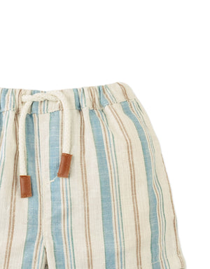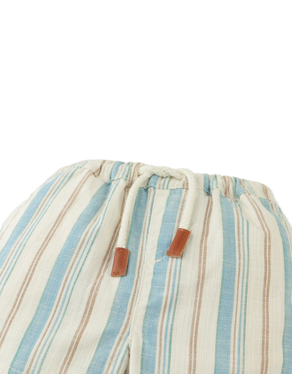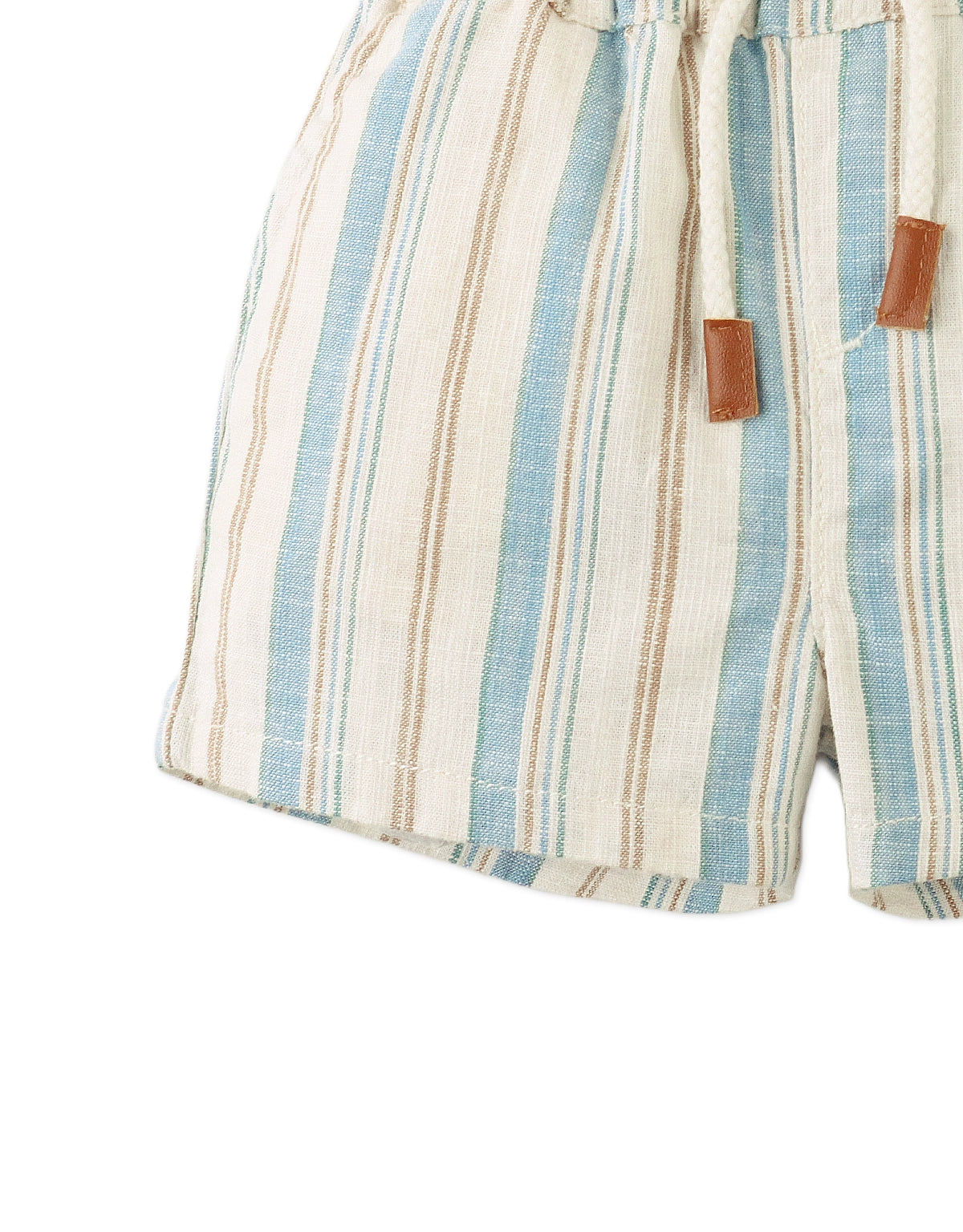 A relaxed yet stylish choice for your little one’s summer wardrobe, these multicoloured striped linen-like cotton pull-on shorts feature a drawstring for an adjustable, comfortable fit. Perfect for warm days and casual outings.