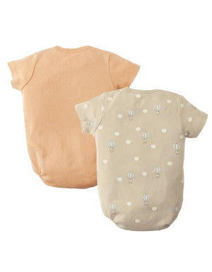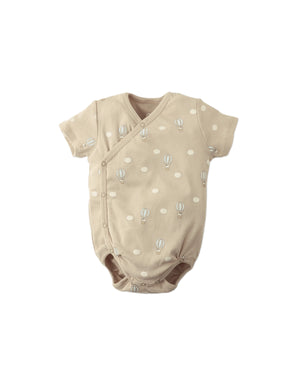 This 2-piece kimono onesie set is made from soft jersey knit and features wrap fronts with snap closures for easy changes—one printed, one solid for everyday versatility.