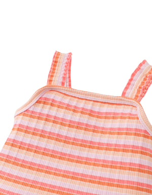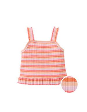 Made for bright sunny days, this ribbed peplum tank features ruffle straps and comes in two charming variations for your little one’s everyday adventures.