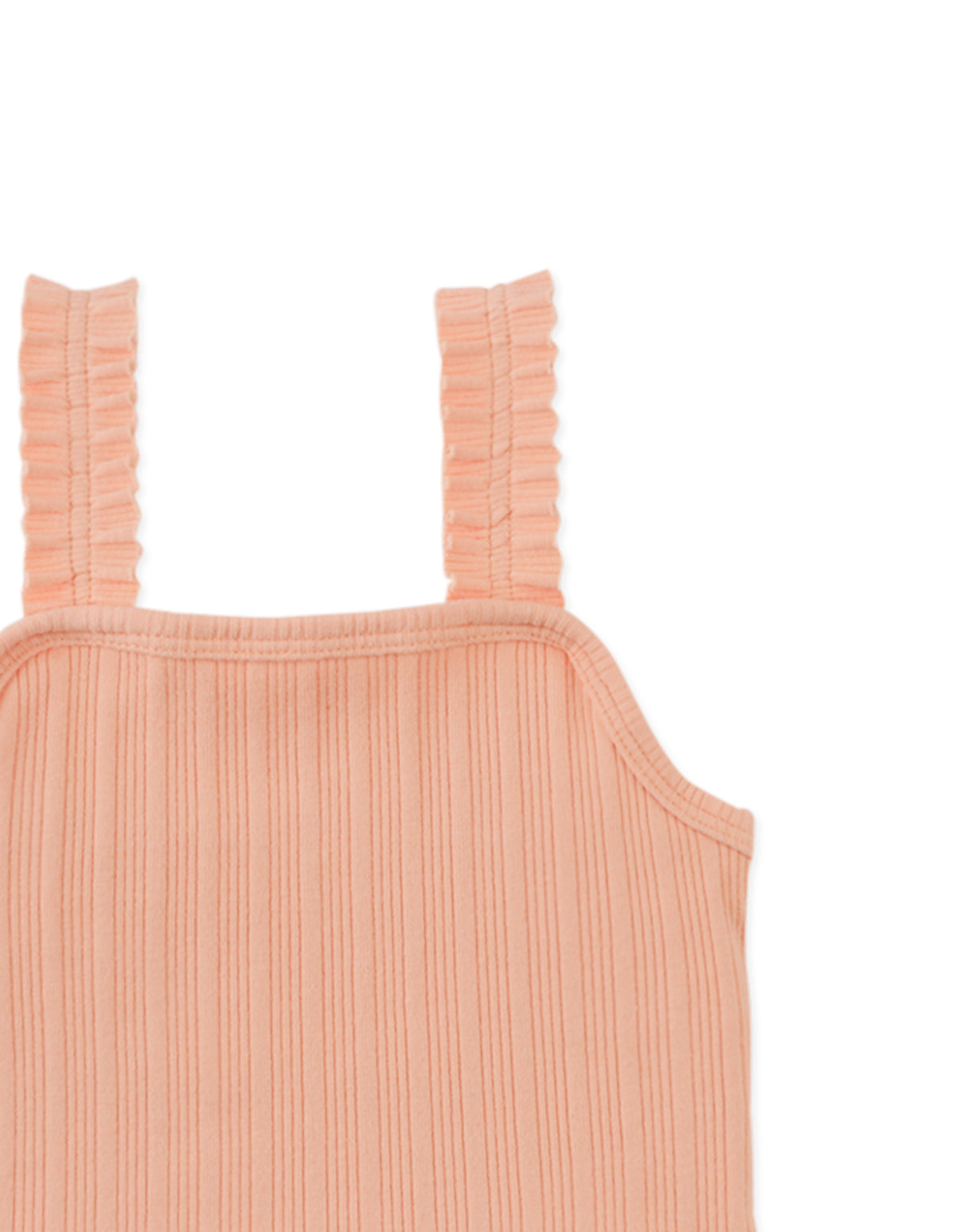 Made for bright sunny days, this ribbed peplum tank features ruffle straps and comes in two charming variations for your little one’s everyday adventures.