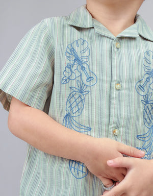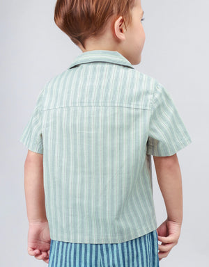 BABY BOYS EMBRO STRIPES LINEN SHIRT