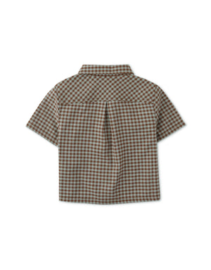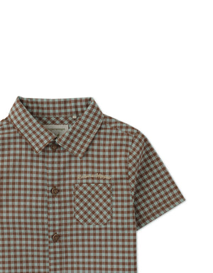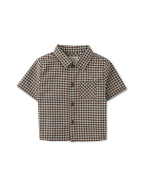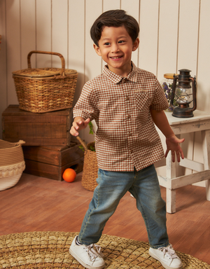 Play in style with this adorable gingham button-down shirt, embellished with embroidery details for added cuteness!