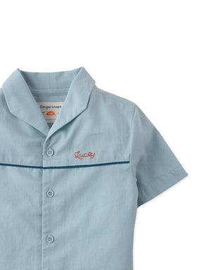 BABY BOYS ITALIAN COLLAR BOWLING SHIRT WITH CHENILLE PATCH