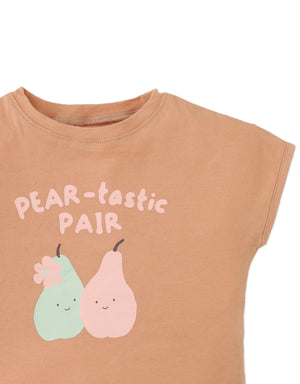 Fit your little one in this soft Cotton Jersey T-Shirt with extended sleeves, made extra delightful in a Peach Juice or Pear-tastic Pair print.