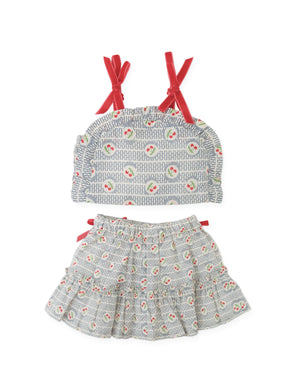 BABY CELESTE RUFFLED TANKTOP AND SKIRT SET WITH BOWS