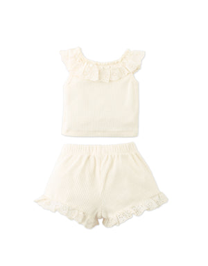 BABY CINDY RIBBED SHORT SET WITH SCALLOPED DETAILS
