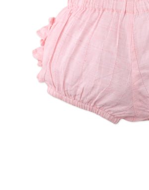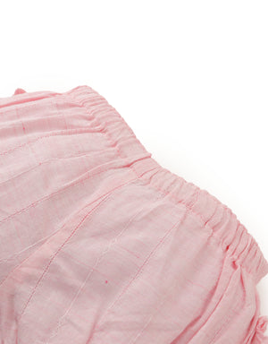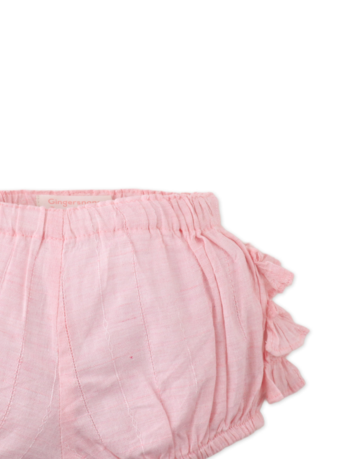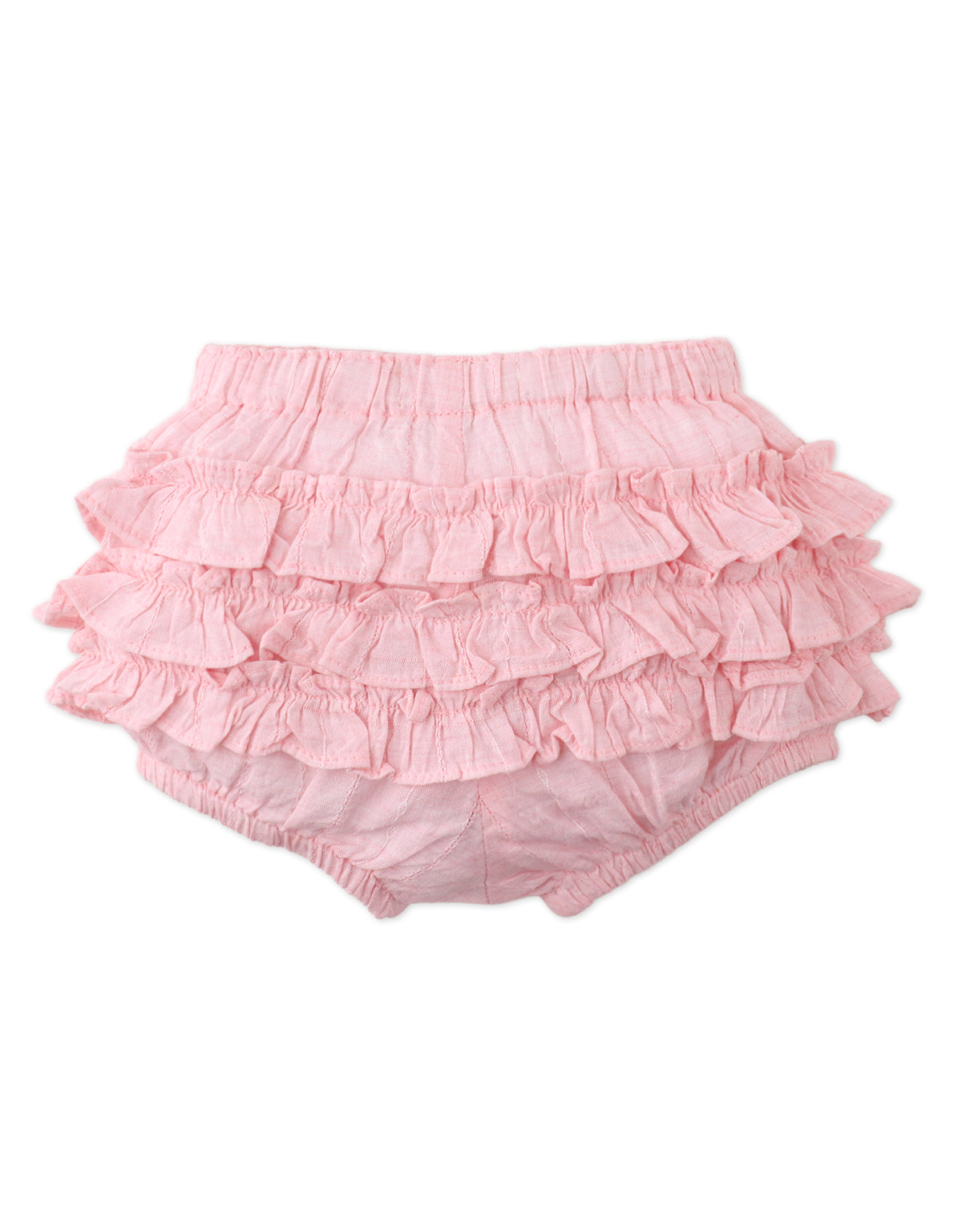 Soft pink and full of playful ruffles, these bloomers add a whimsical touch to any outfit or little adventure.