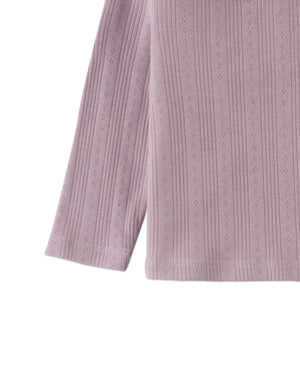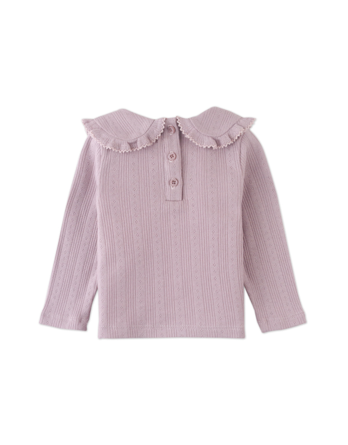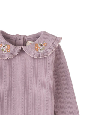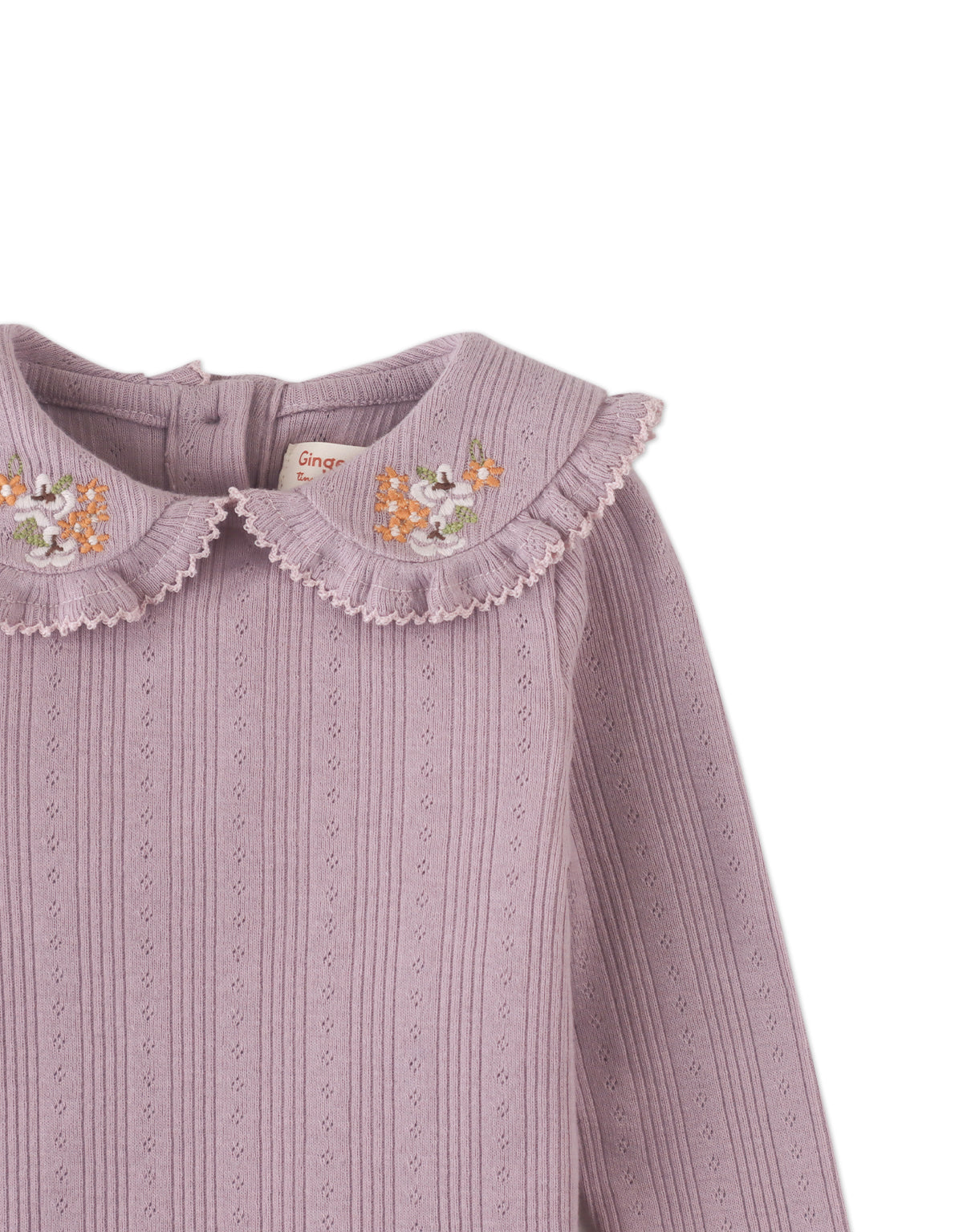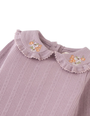 The Baby Cora Long Sleeves Top exudes sweetness with its delicate purple shade and embroidered details on its collar.