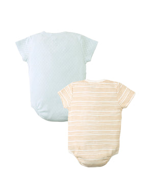 Designed with side ties and a matching snap closure for easy dressing and all-day comfort, this charming 2-piece ensemble features short-sleeve kimono-style onesies crafted from either a mix of soft stripes or delicate pointelle knit.