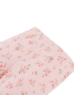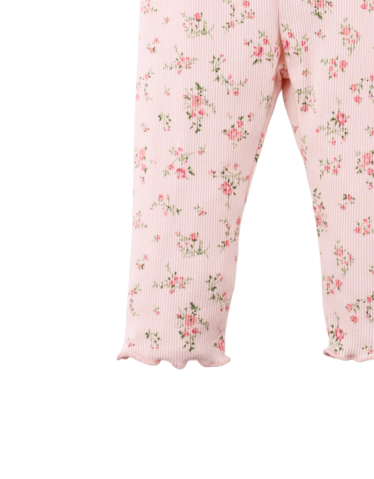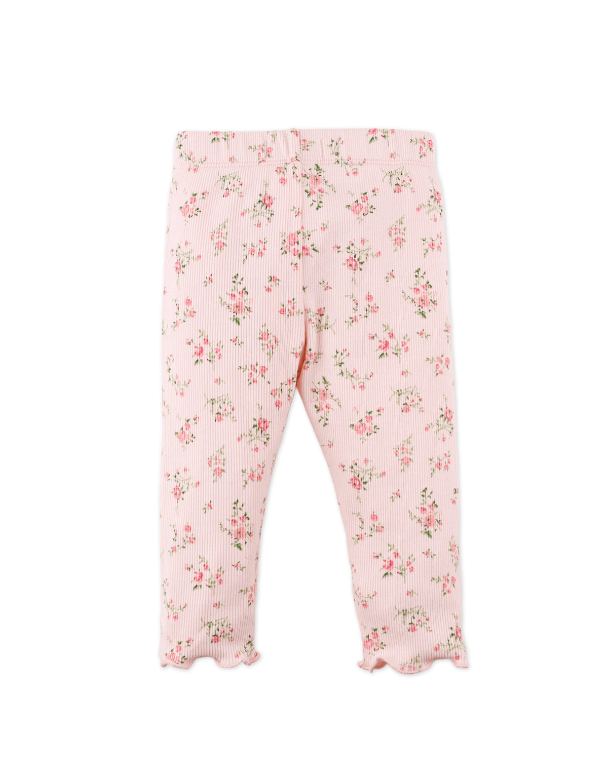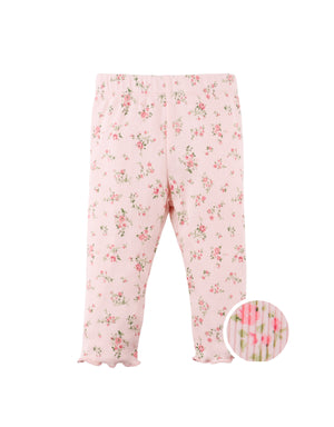 Pair these soft ribbed leggings with her favorite tops. Available in white, pink, or blue, these leggings are also sprinkled with ditsy florals and finished with a delicate merrow-edged hem.