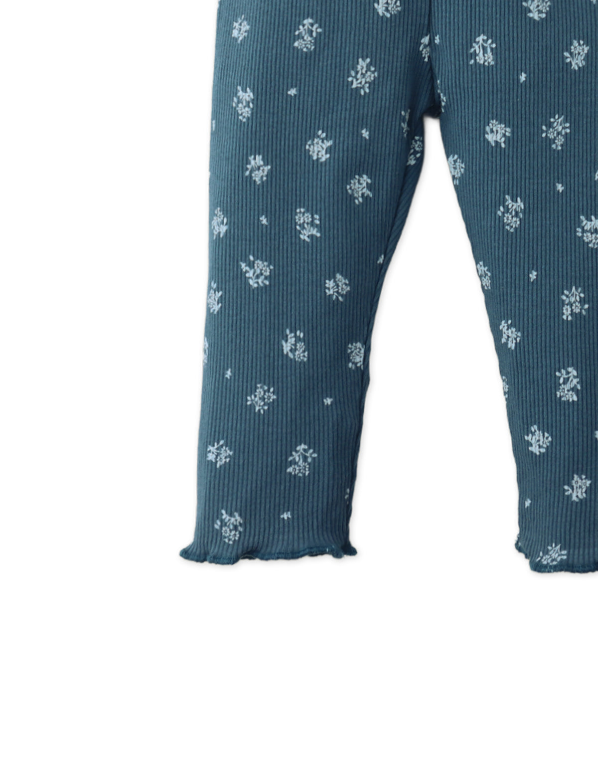 Pair these soft ribbed leggings with her favorite tops. Available in white, pink, or blue, these leggings are also sprinkled with ditsy florals and finished with a delicate merrow-edged hem.