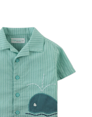 BABY DIEGO BUTTON-DOWN SHIRT WITH WHALE APPLIQUE