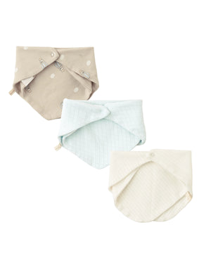 Absorbent, soft, and easy to mix-and-match for daily use, this 3-piece bib set includes scarf-style designs and adjustable snap closures.
