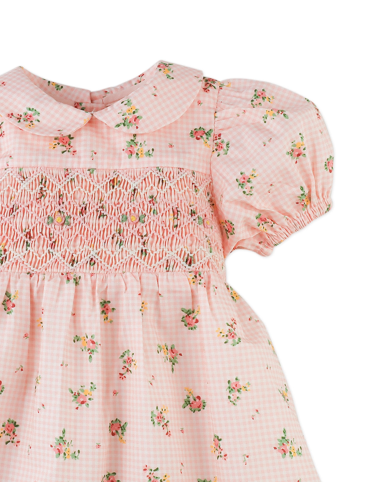 BABY EMIE SMOCKED DRESS WITH COLLAR AND PUFF SLEEVES