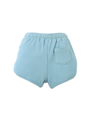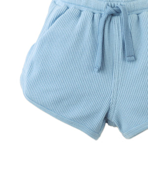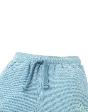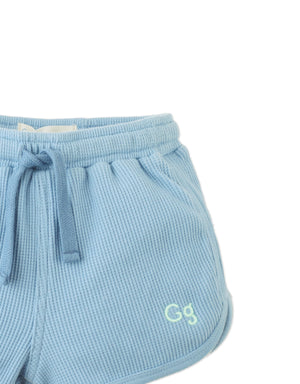 With a playful dolphin cut and soft waffle knit fabric, these blue pull-on shorts are perfect for kids on the move, finished with a simple embroidered logo for that extra touch.