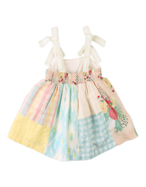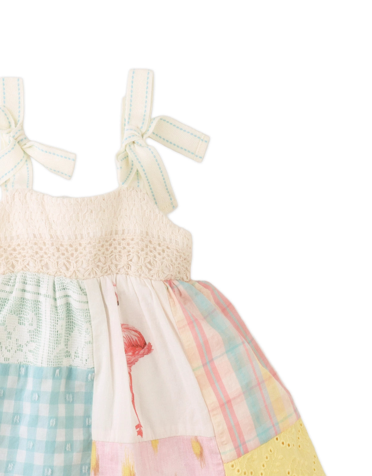 BABY FRANKIE PATCHWORK DRESS WITH WOVEN TAPE STRAPS