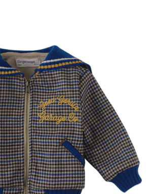 The Fred Sailor Jacket in our Snyder Houndstooth combines playful embroidered patches, a knitted yarn collar, and direct embroidery for a stylish, nautical-inspired look that’s perfect for your little one’s everyday adventures.