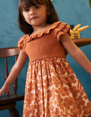 BABY GIRLS CROCHET KNITS BODICE AND PRINTED COTTON COMBI DRESS