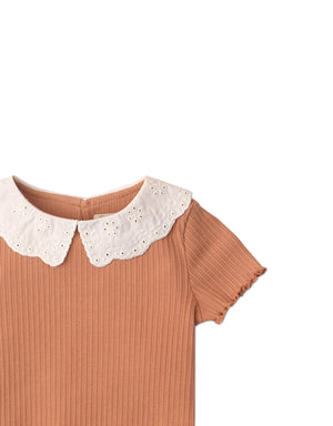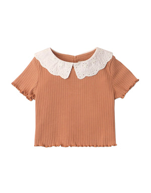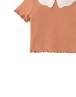 BABY GIRLS EMBROIDERED LACE TRIM COLLAR RIB TEE