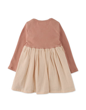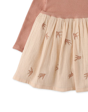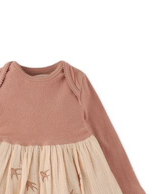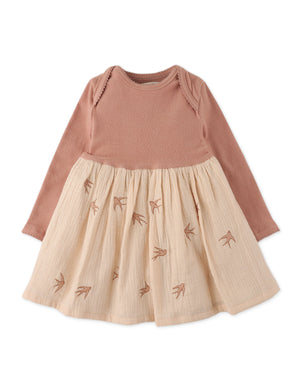 BABY GIRLS ENVELOP NECK DRESS WITH BIRD EMBROIDERY