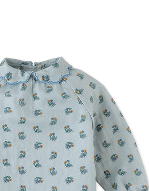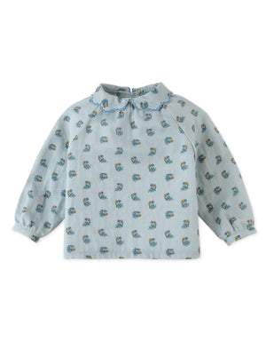 BABY GIRLS FLORAL BLOUSE WITH SCALLOP COLLAR AND CONTRAST EMBRO